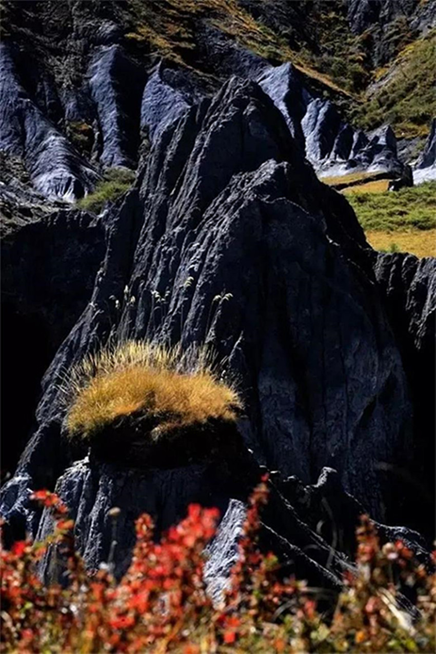 有人看過之后,說這里美得像異星表面,有人驚嘆于那一叢叢從大地冒出的墨黑的石芽,稱其為“中國(guó)地質(zhì)百慕大”。