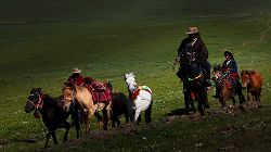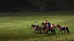 8月的扎溪卡草原水草豐美、牛羊遍地、到處是一片花的海洋,兩萬多平方公里的廣袤大地如同一座敞開的大花園。汽車行駛在草原上,就像一只小船在無邊無際的大海上航行,有時候覺得已走到了天邊,可是登高一望,還是芳草碧連天,地平線依然很遙遠(yuǎn),好像永遠(yuǎn)沒有盡頭。在這離藍天很近離塵世很遠(yuǎn)的廣闊空間里,仿佛在夢游仙境,周圍的山川景物都帶有夢幻般的色彩,對自身的存在也產(chǎn)生一種不真實的虛幻感。在這里,你似乎已變成了一個自由自在的牧人,只不過你放牧的不是牛羊,而是生命和靈魂。 扎溪卡草原的夏天到處呈現(xiàn)出一派生機勃勃的盎然景象,所有的生命之花都在這個季節(jié)盡情地綻放、茁壯地成長。在這個被稱為動物天堂的地方,你仿佛走進了一個天然野生動物園,所到之處,不時有“羽族炫翎,蹄類競走”的情形出現(xiàn)在身旁。你會驚喜地看到一對對黑頸鶴在水邊起舞,一群群白唇鹿在山間奔跑,敏捷的巖羊在峭壁上跳躍,矯健的金雕在藍天上翱翔……