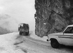 一九九七年十一月二十四日,連續(xù)多日大雪,把整個二郎山裹得嚴嚴實實,白茫茫一片。陣陣山風(fēng)吹過,大霧就像瀑布一樣,從山頂直往下翻涌傾瀉。 一大早,州交通局打冰除雪排險的干部職工就從二郎山管理站直奔山埡口。載有防滑砂的大貨車穿迷霧,繞山梁,向山頂埡口疾馳。由于氣溫太低,霧又大,車上的擋風(fēng)玻璃很快就結(jié)下了冰,路面打滑非常嚴重。前面車輛堵了起來,排險人員只好下車步行。 大霧彌漫,能見度很底,陰霾的天空又飄起了紛紛揚揚的雪花,剌骨的寒風(fēng)陣陣襲來,只聽見車蓬布在風(fēng)中“嗶剝”作響,卻看不見前面到底堵了多少車。排險人員只好相互攙扶踩著冰滑的邊路艱難地向行。好不容易來到堵在最前面的車子面前。原來是一輛載著原木的東風(fēng)牌大貨車側(cè)滑在公路上,把整個公路堵死了。 局領(lǐng)導(dǎo)當即指揮大家用鋼釬、鐵鎬和鋤頭處理冰道,沒有撮箕,大家借來加水桶裝運冰雪……氣溫仍在急劇下降,剛從雪堆里刨出來的路,又被結(jié)起一層冰,就像地面上澆上了油,這就是冰雪道上有名的“桐油凌”。 有二位老同志不顧年老體弱,積極參與打冰除雪,一個在打冰時,被彈起的冰碴把腦門劃了一個口子,鮮血直往外冒。有人想幫他包扎,他堅決不干,自己就用手帕按住,把帽子向下拉蓋住傷口就算了。血從手帕中浸透出來,與眉毛上的冰凌結(jié)在一起。氣溫太低,冰層太厚,十字鎬每挖一下,多數(shù)情況下也就是挖下一個白點而已。不一會兒,另一位老同志已是滿頭大汗,大家勸他休息一下,他卻說:趁著現(xiàn)在雪不是太大,早點把主道上的冰雪多除點,過往二郎山的車輛就多一份安全。 排險人員的手凍紅了,刨冰雪碰傷的指頭還流著鮮血,身上蒸發(fā)的熱氣,把衣領(lǐng)口、袖子口和褲子口結(jié)成了冰,可是,誰也沒有吭一聲。 ……受堵車輛終于向前開動了。 風(fēng),越刮越猛,雪,越來越大。 防滑車在冰雪道上艱難地向前爬行著,車箱上面的職工們揮舞的洋鏟向路面撒著防滑砂。一路上風(fēng)絞雪,防滑車象一頭不聽使喚的牛,顛簸、亂竄,好不容易才來到260(二郎山最險處),對這里“桐油凌”路面進行重點防滑處理后,防滑車又返回來,開始向山頂進發(fā)……風(fēng)雪二郎山上打冰除雪、防滑排險,看似沒有驚天動地的壯舉,身臨其景才知其艱難辛苦。難怪當年每每經(jīng)過二郎山冰天雪地奇險路段的車,都會向風(fēng)雪中屹立路邊的交通系統(tǒng)排險保暢通的職工們鳴笛致敬,風(fēng)雪中的那份情彌足珍貴。 川藏線上的老司機傳下來一首傷心的順口溜:“車過二郎山,如闖鬼門關(guān),萬幸不翻車,也要凍三天!”其險峻實為罕見,尤其是途經(jīng)二郎山260(公路公樁)處,曾被淡虎色變的人稱為“鬼招手”的險路段。 1983年1月3日,有著安全行車44萬公里記錄的一位駕駛員開著輛嶄新的東風(fēng)牌貨車,同行還有兩名職工,夜行二郎山,在彌天大霧中神秘地“失蹤”了。十五天后,搜山的人才用望遠鏡看到260公里路樁處的山崖下,有一塊汽車破篷布掛在樹枝,猶如招魂的凄厲幌幡在冷風(fēng)中招搖晃動。鋼纜繩吊著搜山的人下到崖下400米深處的谷底。扒開一座座雪堆,叫人汗毛倒豎:雪堆下,盡是廢大梁、爛車廂、銹車頭和支離破碎的汽車,足有一個汽車連!一輛不知埋了多久的卡車廂里牛肉已腐爛,駕駛室里坐著三具發(fā)黑的僵尸……其狀慘不忍睹!