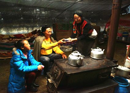 達(dá)珍和她的丈夫是我州爐霍縣宗塔草原上普通的牧民,育有一對(duì)兒女,都在縣上讀書(shū),小兒子上小學(xué),大女兒讀初中,放暑假,11歲的女兒回到了牧場(chǎng),幫助阿爸、阿媽放牧。女兒的到來(lái),讓達(dá)珍家每一天都充滿了歡笑,7月中旬的一天,筆者來(lái)到了這里,用像機(jī)記錄了達(dá)珍的一個(gè)早晨,那是一個(gè)朝霞滿天的開(kāi)始?!?郭昌平 攝影報(bào)道