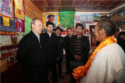 尹力在爐霍縣蝦拉沱村調(diào)研。