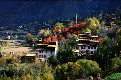 丹巴的秋是有著美麗色彩的季節(jié),你瞧,在峽谷兩岸的山巔,那一簇簇綠樹在一夜之間竟然點(diǎn)綴上了黃的、紅的顏料,就像是一名丹青能手不小心間打翻了調(diào)色盤,讓那些靈動(dòng)的顏料在樹冠上潑灑。黃色的樹葉正印證了“滿樹盡帶黃金甲”的意境,黃得透徹,黃得潔凈。而那些紅色的樹葉,猶如盛開的鮮花,在逐漸蕭條的秋日里顯露出勃勃生機(jī)……那一片片黃紅綠相間的顏色,一寸一寸的往下挪移,讓看慣了春色綠野滿山的人們驚呼大自然的鬼斧神功之作。山腰,蔥綠的樹一棵連著一棵,密密層層,頑強(qiáng)地抵抗著秋風(fēng)的寥落,然而,那黃的紅的顏料終歸于要流向峽谷底,所經(jīng)之處,風(fēng)刺骨,葉瑟縮,大地又將再次被剝蝕掉華麗的外衣,露出山的嶙峋。我想,在山巔,那些樹葉在秋寒的作用下,依依不舍地與樹枝作別,隨風(fēng)抖落,在樹林中上下翻飛,猶如一只只美麗的彩蝶在林中翩翩起舞,當(dāng)落到地面上時(shí),發(fā)出生命即將逝去時(shí)的低低嘆息聲,然而那哀傷卻沒有醞釀太久,幾只小蟲迅速地聚集在葉片底下,為尋找到過冬的庇護(hù)所而興奮不已,那些葉片也感受到了生命存在的意義,為自己即將化為塵土前還能再次發(fā)光發(fā)熱而激動(dòng)。跟隨著秋的步伐,獨(dú)自一人穿行在秋色滿滿的樹林中。眼前,一片片落葉漫空飛舞,伸出雙手,讓那些黃的紅的葉片降落在手心里,一絲淡淡的蘋果香味從小小的葉片中透出,悠悠的在我鼻尖縈繞。那一片片落葉,不正是秋日向大地母親發(fā)出的明信片嗎!春夏兩季,大地母親用自己的乳汁哺育著這些葉片,泛著健康的綠色,渲染了大地,茁壯的成長。那透心的綠,將大地裝扮得格外的妖嬈,充滿了無限的活力。秋日漸近,它們?cè)谇镲L(fēng)的浸透下,剝蝕掉綠色的外衣,消耗掉多汁的綠葉,逐漸的消瘦,最后薄如蟬翼,在秋風(fēng)的吹拂下,在大地母親的召喚下,終于脫離枝條,晃晃蕩蕩的飄向地面。