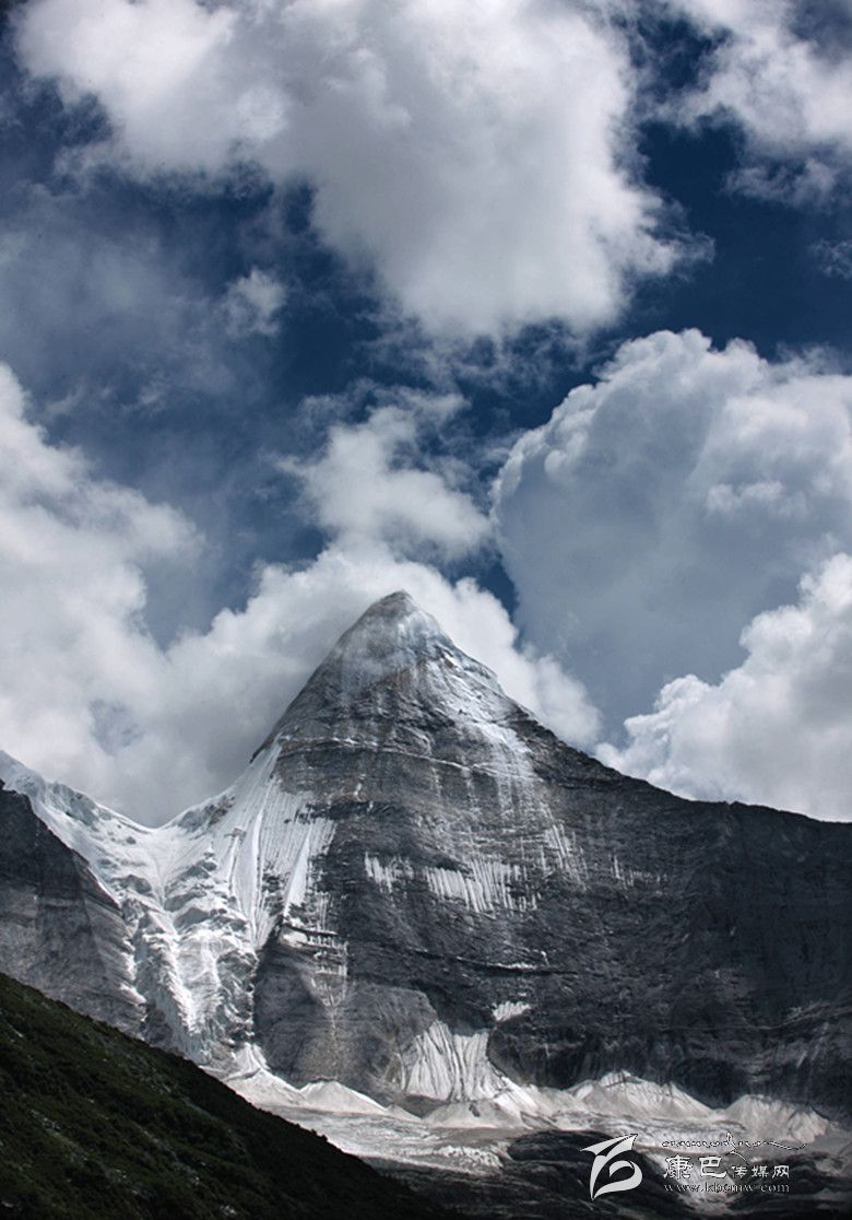 回想起來,我們從隴隴壩到?jīng)_古寺,足足走了一個多小時,在高海拔的山區(qū)徒步的確是件痛苦的事,但當(dāng)偶爾的抬頭,北側(cè)面的仙乃日神山向你展現(xiàn)他寬廣的身體的時候,一切的疲勞、痛苦,頓時化作烏有。當(dāng)巍峨、圣潔的山峰如神靈顯圣般出現(xiàn)時,淚水潤濕了我的雙眼,情不自禁有一種下跪膜拜的沖動。仙乃日是被稱作觀世音菩薩的神山,菩薩多變的法相此刻變得莊嚴而慈和,遙遠而又伸手可觸。仙乃日的光芒灑在亞丁深處林海草原上,灑在漂泊苦旅的心中,遠處的經(jīng)幡隨風(fēng)翻動唱著頌歌,流轉(zhuǎn)的陽光在溪流中變幻,我始知來到了佛佗的世界。