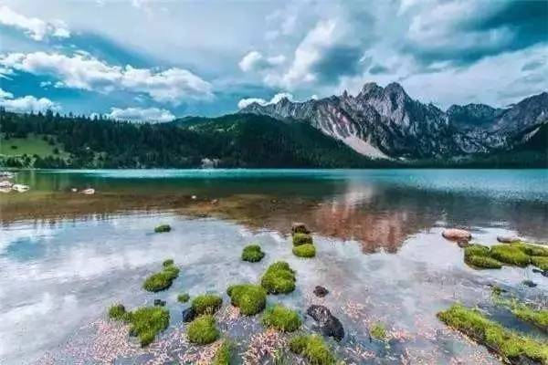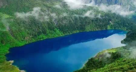 被原始森林和草甸環(huán)抱的五須海,當(dāng)?shù)厝擞鳛椤跋膳釆y的明鏡”,湖水碧綠透亮,將周圍的山水和天空全映照在湖面,幽靜的像一幅畫。從夏到秋周圍百花盛開,古樹盤根錯(cuò)節(jié)、藤枝攀沿纏繞,杜鵑樹伸向湖面,仿佛進(jìn)入原始古樸的仙境。
