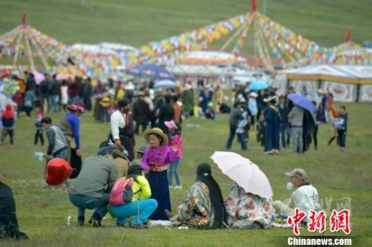 扎溪卡草原上的“帳篷節(jié)”吸引了不少當(dāng)?shù)孛癖姾陀慰汀?劉忠俊 攝