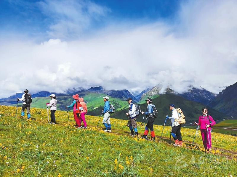 本網(wǎng)訊 8月2日,來自全國各地的游客在理塘縣格聶景區(qū),徒步體驗(yàn)格聶神山秘境之旅。