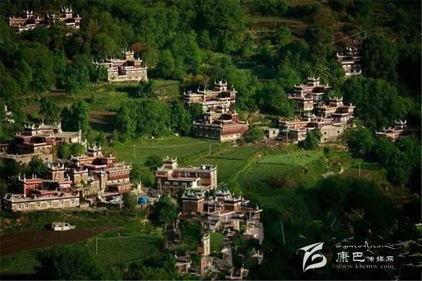遠(yuǎn)遠(yuǎn)看去,充滿靈氣的山谷中,翡翠般的青草綠樹之中,是那沉甸甸的田地和隱在密林深處的寨房,伴著時有時無的潺潺溪流,一幅富有動感的絕妙山寨畫卷隨之展示在你的眼前。山寨依山面水,周圍綠樹掩映,藏寨從大金河谷層層疊疊向上攀沿,錯落有致的散布在山坡上,一直延伸到卡帕瑪群峰峰的腳下,非常的漂亮。