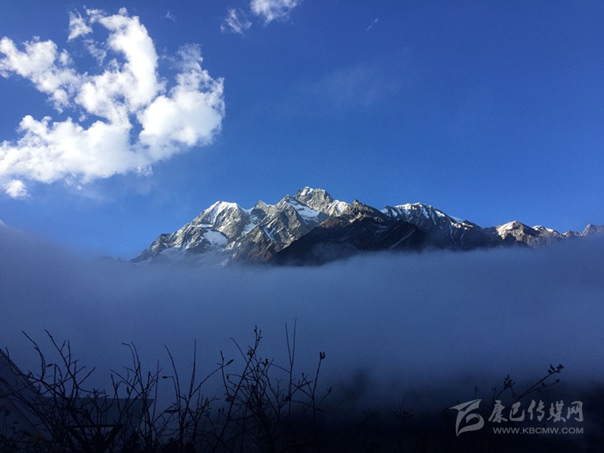 值得注意的是:空間的產(chǎn)生與具體的山水樹木有關(guān),但是最重要的空間體驗(yàn)卻是天空。天空的畫法決定了空間的深度和廣度。所以在早期勉唐派繪畫中天空是滿涂的藍(lán)色,隨著對(duì)空間認(rèn)識(shí)的逐步加深,天空慢慢變成深藍(lán)色和淺藍(lán)色的分割,再后來演變成為上深下淺的漸變效果;再后來的嘎孜派繪畫中,天空甚至是僅用“藏花青”點(diǎn)染的上部,下部留出布底色的畫法。這種畫法極具空氣感、透視感和靜穆感,與王希孟《千里江山圖》的“空間淡遠(yuǎn)”的審美如出一轍。