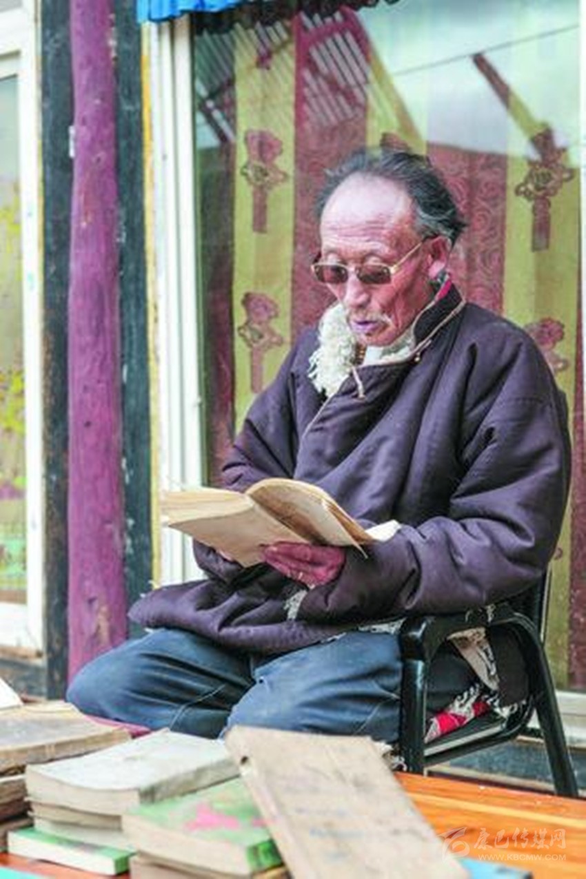 余音繞梁、鳴金收兵,天造地合的佳話(huà)叫人回味無(wú)窮。面對(duì)還沉浸在烽火邊關(guān)與兒女情長(zhǎng)中的老人,真有一種不忍打擾的感動(dòng)。幾十本從八十年代到二十一世紀(jì)由西藏、甘肅、青海、四川等民族出版社出版的各種藏文《格薩爾王傳》書(shū)籍,雖然有的邊角磨損嚴(yán)重,有的封面封底用塑料薄膜一針一線(xiàn)串起,卻沒(méi)有一本掉頁(yè),更不要說(shuō)有污漬灰塵了,揣摩著那一本本厚薄不一的書(shū)籍,如數(shù)家珍般逐一介紹書(shū)中的內(nèi)容,就算間隔30多年都還記得買(mǎi)書(shū)時(shí)的場(chǎng)景,足見(jiàn)老人對(duì)它的情有獨(dú)鐘。