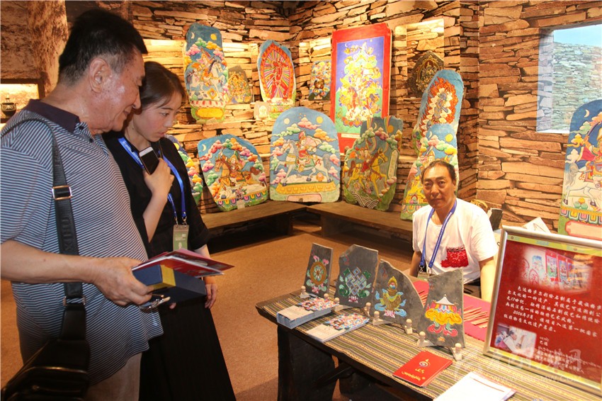 記者在現(xiàn)場看到,多位非遺傳承人借助聲光電、AR等新技術(shù)進行演示,立體直觀地展現(xiàn)了走廊區(qū)域文化產(chǎn)業(yè)項目在推動特色文化資源與科技融合方面的新趨勢。其中,我州展出的菩提珠、勉唐派唐卡、郎卡杰唐卡等民族特色工藝產(chǎn)品,都給觀眾留下了深刻印象。