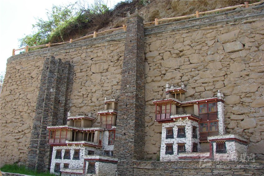 宋達(dá)村活動(dòng)場(chǎng)所是一個(gè)寬約二十米,長(zhǎng)約三十米的大壩,里面是高約十米的石砌圍墻,此時(shí)幾個(gè)工人正在忙碌著,幾座建筑模型已初見成形,最左邊是一座十三角碉的模型,一名工人坐在碉樓的樓頂上拿著手錘正奮力的敲打著眼前的石片,那石雕一半露在墻外,還有一半巧妙的鑲嵌在圍墻里。筆者走上前去,來到“碉樓”下,整座碉樓都是用灰色的石片砌成,每個(gè)石片間距一致,幾乎不見一點(diǎn)縫隙,充分展示了嘉絨人民高超的石砌技藝。十三角碉,顧名思義,就是整座碉樓由十三個(gè)角組成,在古時(shí)候是展示財(cái)富和地位的一種表現(xiàn)形式,砌墻的師傅非常健談,他告訴我,在嘉絨地區(qū),碉樓又以十三角碉最為罕見,據(jù)說,如今殘存的十三角碉全世界都只有三座,而其中保護(hù)得最為完整的尤數(shù)梭坡鄉(xiāng)普格頂村了,他頓了頓,伸出布滿青筋沾滿灰塵的手,往上指了指,自豪的說,它就在我們宋達(dá)村的山巔上,我不禁肅然起敬,為家鄉(xiāng)擁有這樣一座凝聚著嘉絨人民智慧結(jié)晶的古碉而激動(dòng)不已。在十三角碉旁,是一座典型的嘉絨藏房模型,共有五層,第一層為關(guān)牛羊的畜圈,石砌匠人巧妙的將一樓門洞和排水口合二為一,即增加了美感,也增加了科學(xué)性。第二層樓房有兩扇窗戶,是人們飲食起居的重要場(chǎng)所。第三層樓房上有三扇窗戶,是儲(chǔ)藏糧食、臘肉的地方。每一扇窗按照比例縮小制成,當(dāng)筆者問匠人為什么嘉絨藏房的門窗都如此矮小時(shí),他對(duì)此也娓娓道來。他告訴我,古時(shí)候嘉絨大地上混沌莫開、妖魔橫行,人們每天都在膽戰(zhàn)心驚中度過,那時(shí)候的房屋窗戶、門都修得異常的高大,夜幕降臨時(shí),這些妖魔就從窗戶、門洞里爬進(jìn)來,將熟睡的人擄走,后來嘉絨女王要求屬民們將窗戶和門洞改小,后來人們一直將此修建之法一直延續(xù)至今。第四層上是用木板、木頭作成的回廊,紅白相間,煞是美觀。第五層是堆放雜物的場(chǎng)所,石墻的每個(gè)角上都有石砌的尖角,如牛角一樣直指蒼穹,在尖角之間,有煨桑祈福的佛塔。再往右邊是一座四角碉的模型,由于只有四角,因此在修建中速度比十三角碉快了許多,那棱角愈發(fā)的鋒利。在嘉絨藏區(qū),這種碉樓是最常見的碉樓之一,碉樓藏語中稱為“邛籠”。早在2000年前《后漢書'西南夷傳》就有羌族人“依山居止,壘石為屋,高者至十余丈”的記載。碉樓多建于村寨住房旁,高度在10至30米之間,用以御敵和貯存糧食柴草。碉樓有四角、六角、八角幾形式。碉樓一般建于沿河谷高山或半坡有耕地和水源的地方,結(jié)合地形,利用有限的平臺(tái),利用石頭筑成平頂。一般分成二層或三層,上層堆放糧食,中層住人,下層圈養(yǎng)牲畜,高二三丈,稱為邛籠;高的可有十三層,達(dá)十余丈,稱為碉。碉樓由專門的砌石匠修建,原料為亂石,用泥土粘合,不吊線,不繪圖,全憑經(jīng)驗(yàn),信手砌成。其壁面能達(dá)到光滑平整,不留縫隙,其堅(jiān)固程度則可在川西這個(gè)地震多發(fā)區(qū)聳立數(shù)十年甚至數(shù)百年,經(jīng)歷數(shù)次地震仍然巍然屹立,有的已偏倚卻不倒,有的彎曲為弓,自成風(fēng)景。它按照功能分為戰(zhàn)碉、家碉、寨碉等。再往右邊走,是一座低矮的樓房,它也是嘉絨藏區(qū)最為常見的藏房之一,雖然低矮,然而其中的雕樓畫棟美不勝收。據(jù)縣農(nóng)辦負(fù)責(zé)人介紹,宋達(dá)村地處普格頂山腳下,省道線從門前經(jīng)過,山頂山有著為名遐邇的十三角碉,民風(fēng)純樸,因此該村要突出物質(zhì)文化引領(lǐng)經(jīng)濟(jì)建設(shè)的發(fā)展,為此打造碉樓文化及藏族民居文化,吸引大批游客走進(jìn)村莊里,鼓勵(lì)村民自己建造有著嘉絨風(fēng)味的藏族民居,實(shí)現(xiàn)生產(chǎn)發(fā)展,這是新農(nóng)村建設(shè)的中心環(huán)節(jié),是實(shí)現(xiàn)其他目標(biāo)的物質(zhì)基礎(chǔ),也是我們打造宋達(dá)村新農(nóng)村建設(shè)所思考的問題,我們也逐步在實(shí)現(xiàn)這目標(biāo)。