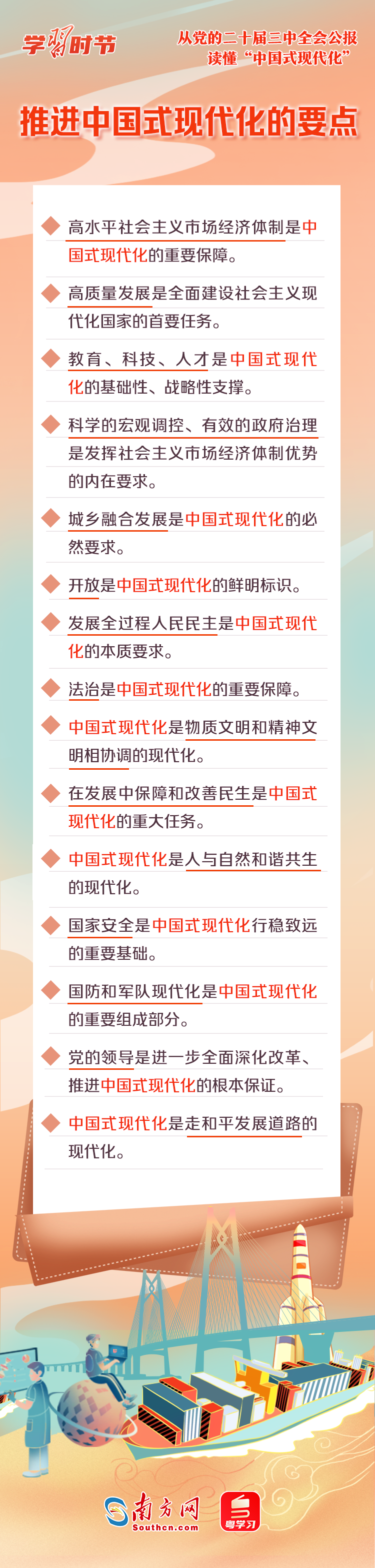 中國(guó)式現(xiàn)代化是中國(guó)共產(chǎn)黨和中國(guó)人民長(zhǎng)期實(shí)踐探索的成果,是一項(xiàng)偉大而艱巨的事業(yè)。全會(huì)公報(bào)中,“中國(guó)式現(xiàn)代化”一詞被反復(fù)提及,深刻闡述了進(jìn)一步全面深化改革與推進(jìn)中國(guó)式現(xiàn)代化的關(guān)系,以及中國(guó)式現(xiàn)代化的重要保障、必然要求、本質(zhì)要求等重要內(nèi)容。一起來學(xué)習(xí)!