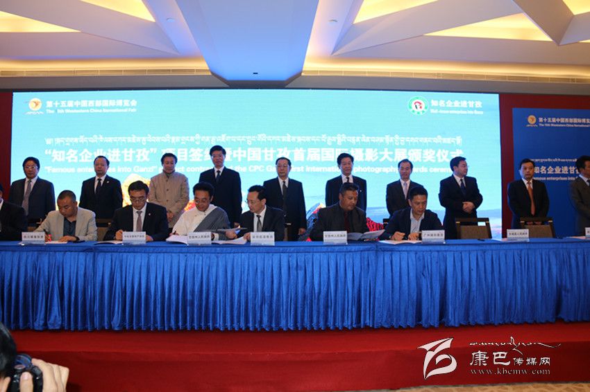 本網(wǎng)訊 (記者 秦松 陳雪峰 文/圖) 10月25日,“知名企業(yè)進甘孜”項目簽約暨中國甘孜首屆國際攝影大展頒獎儀式在成都舉行。項目簽約儀式上,我州按照“一優(yōu)先、二有序、三加快”的產(chǎn)業(yè)發(fā)展思路,精心篩選包裝推出了具有一定代表性和廣闊市場前景的148個估算總投資560億元的招商項目,主要涉及旅游業(yè)、文化業(yè)、特色農(nóng)牧業(yè)、中藏醫(yī)藥業(yè)、工業(yè)、服務(wù)業(yè)等產(chǎn)業(yè)。邀請國內(nèi)外知名企業(yè)100余家;簽約項目23個,投資額87.28億元。其中:旅游類9個,投資額41.68億元;能源類5個,投資額32.8億元;農(nóng)牧業(yè)類3個,投資額10.6億元;基礎(chǔ)設(shè)施類4個,投資額2.2億元;協(xié)議簽約2個。