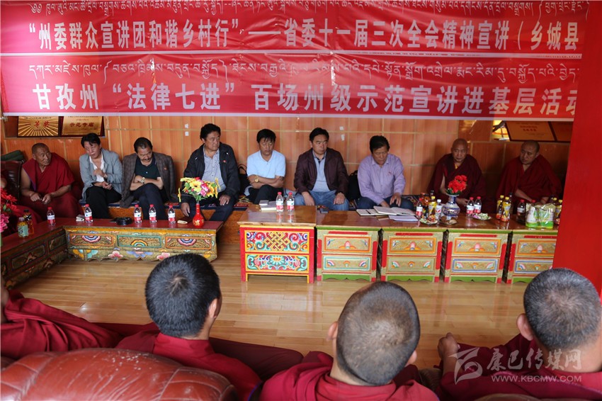 本網(wǎng)訊 按照州委統(tǒng)一安排部署,7月27日下午,州委群眾宣講團深入色達縣色柯鎮(zhèn)東嘎寺開展了“州委群眾宣講團和諧鄉(xiāng)村行”——省委十一屆三次全會精神暨“法律七進”百場州級示范宣講進基層活動。