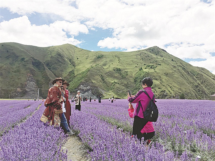 新網(wǎng)紅打卡地——新都橋薰衣草花海吸引著來(lái)自全國(guó)各地的游客。本網(wǎng)記者 游飛 劉婭靈 攝