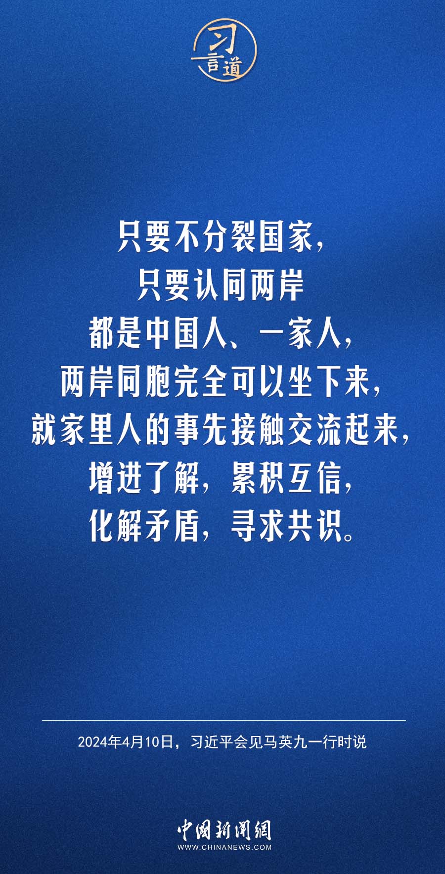 中共中央總書記習近平10日下午在京會見馬英九一行。習近平指出——