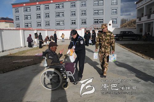 其實,稻城縣公安局到敬老院開展看望慰問活動已經(jīng)不是第一次了,他們與孤寡老人們的結(jié)緣早在3年前就開始了,一直把愛心延續(xù)至今,深受社會各界好評。2011年,全省公安機關(guān)開展了“警民親”活動,稻城縣公安局積極響應(yīng),在對廣大游客和牧民群眾不遺余力地給予熱情服務(wù)之外,還始終不忘心系敬老院里的孤寡老人,把對這些最需社會關(guān)心又易被遺忘的社會弱勢群體所開展的關(guān)愛活動作為密切警民關(guān)系的重要載體來抓。自此開始,稻城縣公安局局機關(guān)民警都多了一個約定:不管工作再忙、任務(wù)再重,都要抽空到敬老院開展走訪慰問活動,用真情實意給孤寡老人們送去人民警察的溫情。