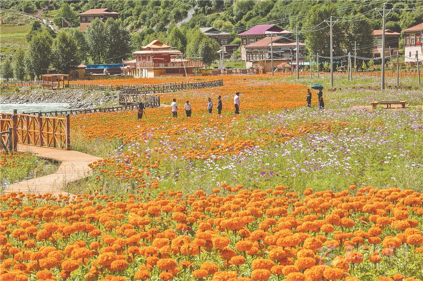 麻絨鄉(xiāng)德來(lái)村萬(wàn)壽菊種植基地。