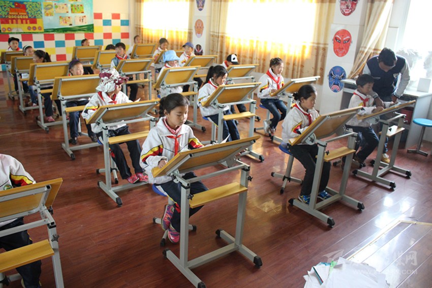 色達小學生正在上美術(shù)課。