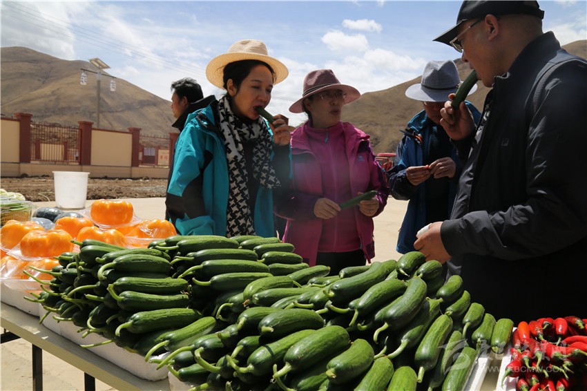 德格中扎科農(nóng)業(yè)產(chǎn)業(yè)園有機(jī)蔬果引得參觀考察者競相品嘗。
