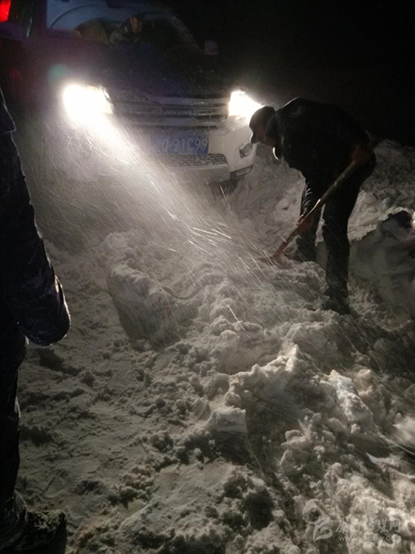 3日下午6時(shí),冒著風(fēng)雪的越野車駛?cè)刖嚯x縣城80公里外的大雪山。
