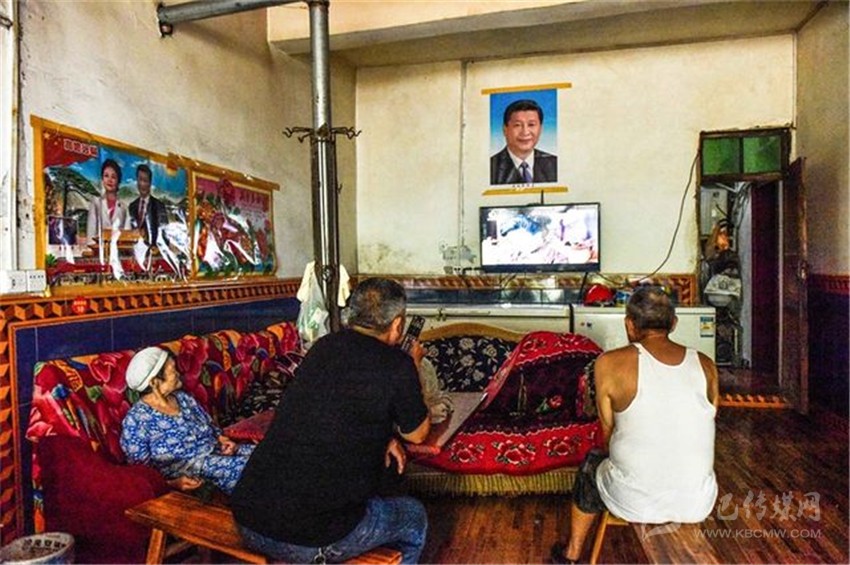 沒客人時,朱國富陪81歲的父親和80歲的母親看電視。張可凡攝。